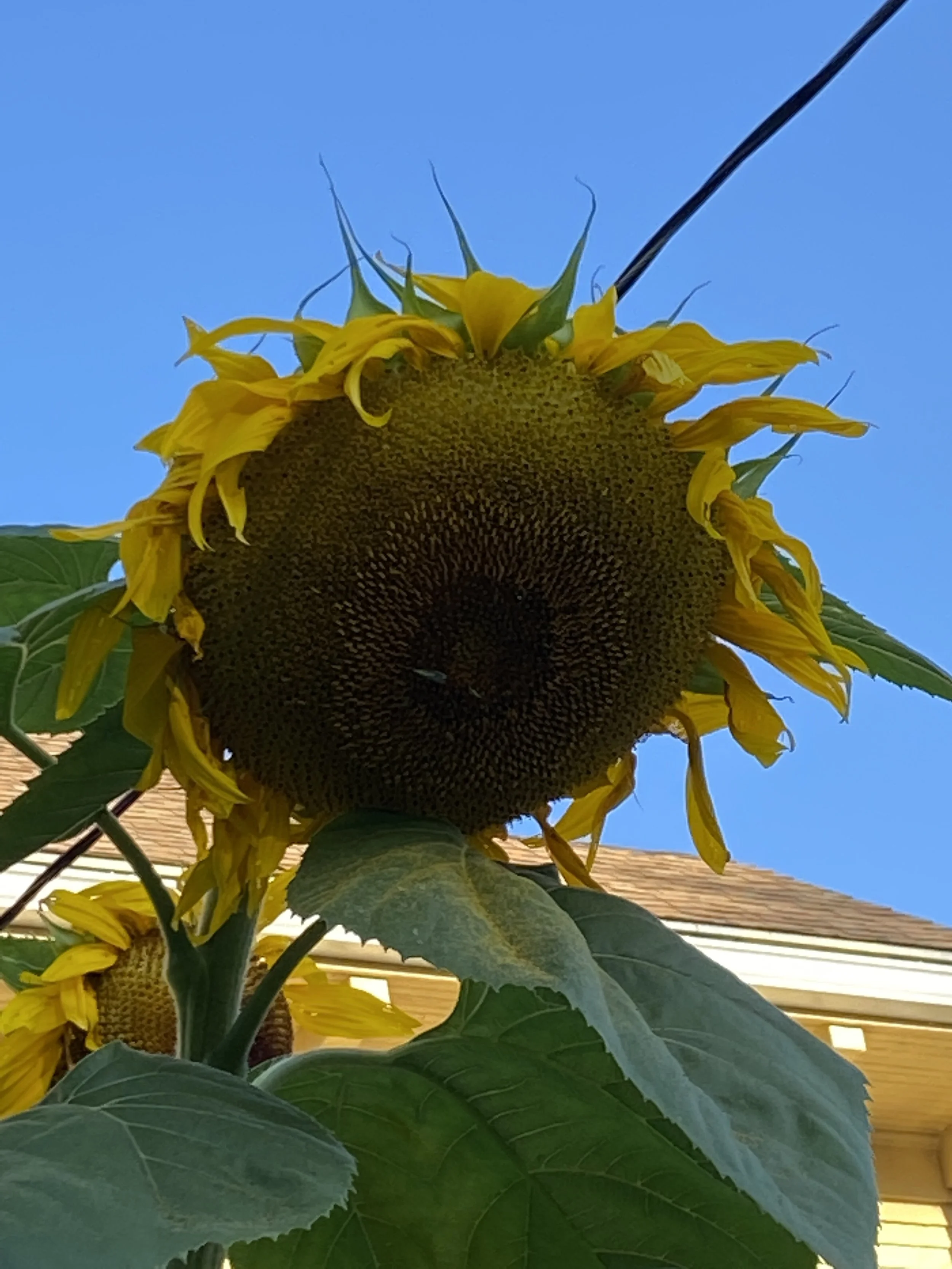My husband was born and raised in Kansas and therefore has an affinity for sunflowers. Each year we grow a variety of sunflowers in our backyard and especially enjoy the giant ones that grow sometimes 10 feet tall. The birds and squirrels also appreciate our choice of flower during the winter months!