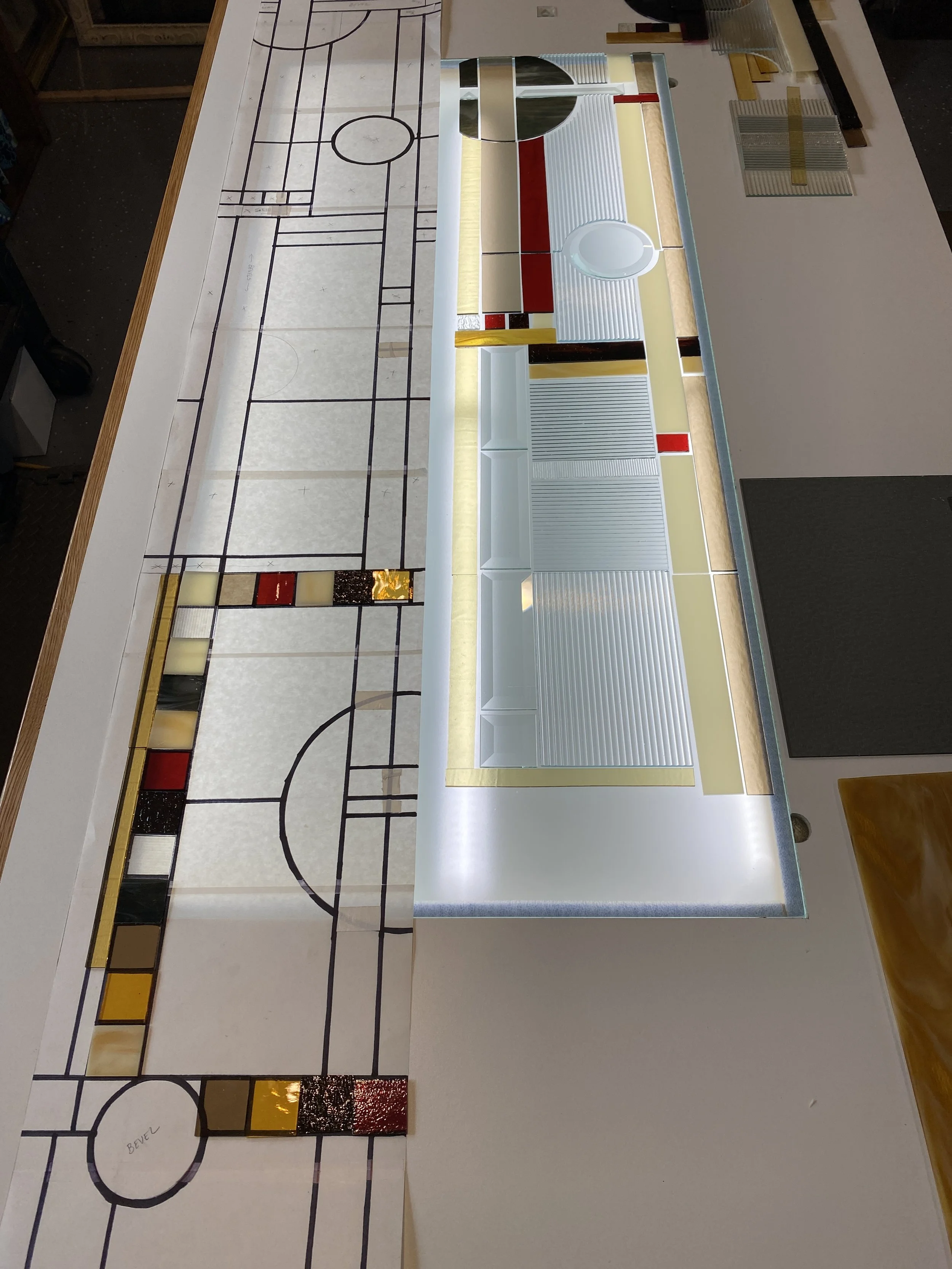 Test pieces were created to determine color choices and whether to go with leaded vs no-lead.