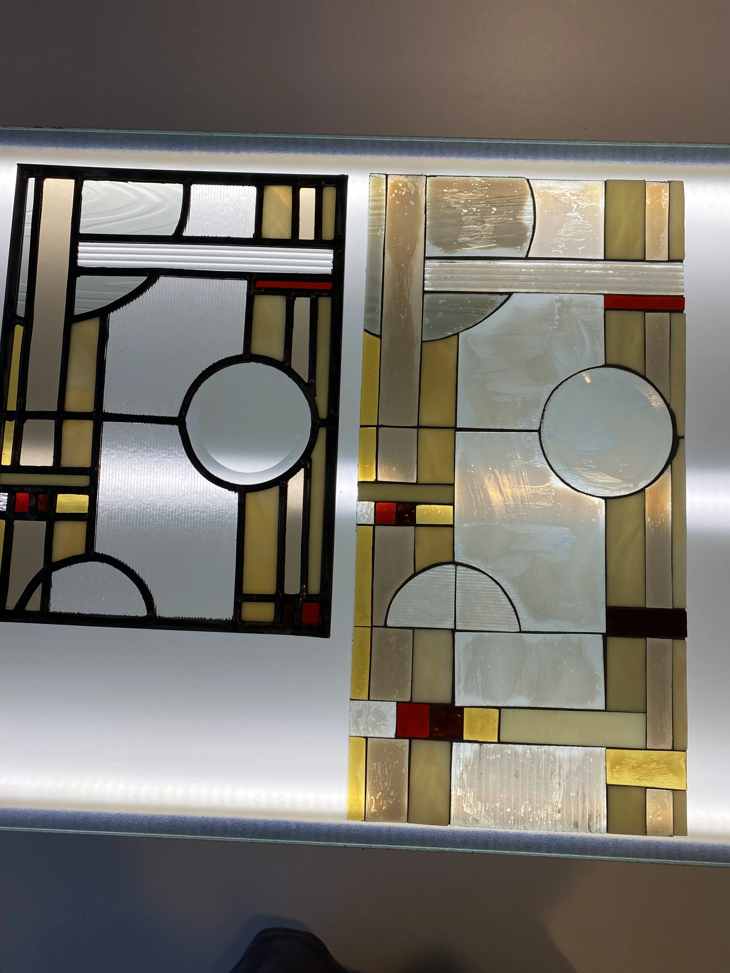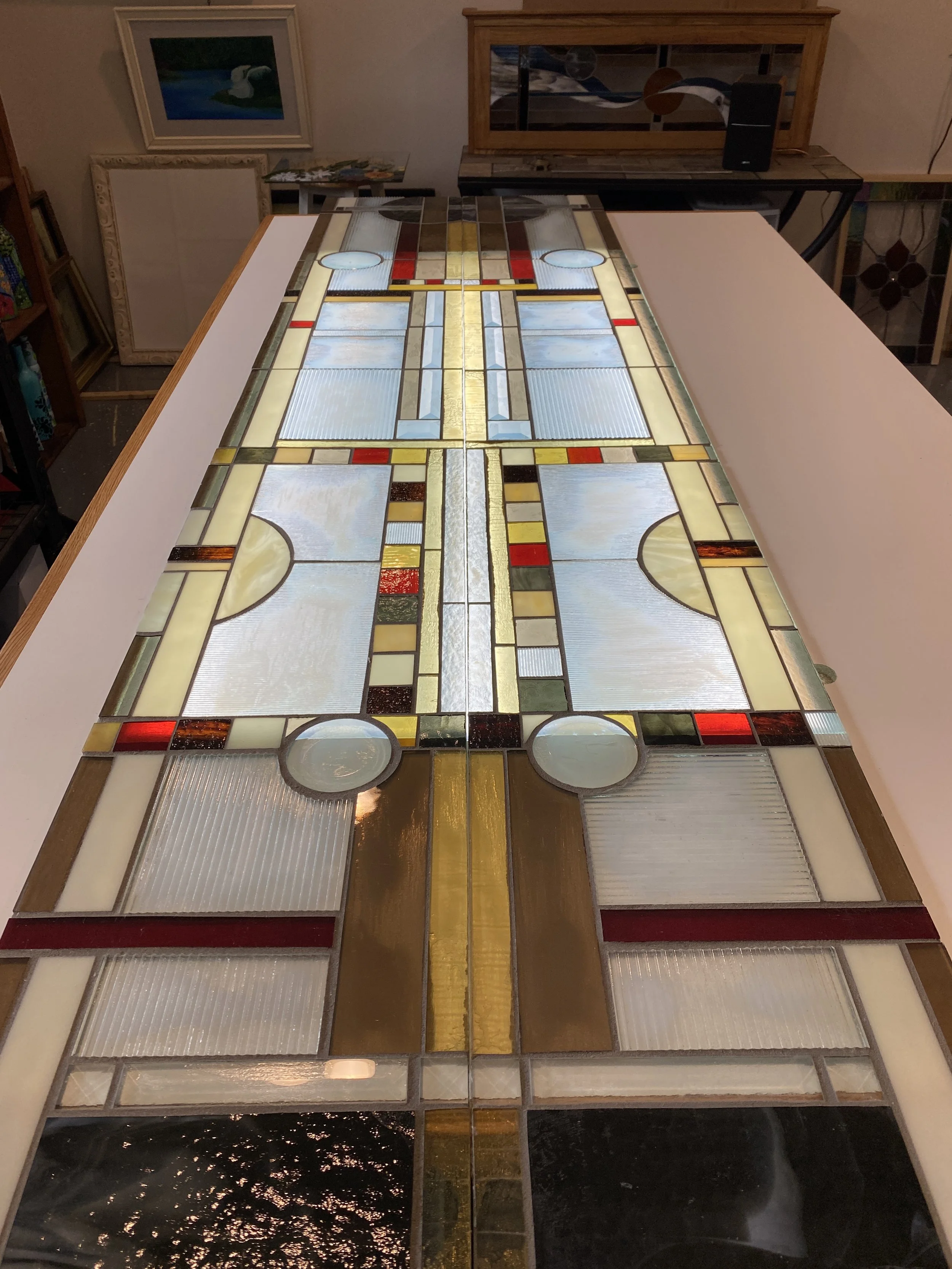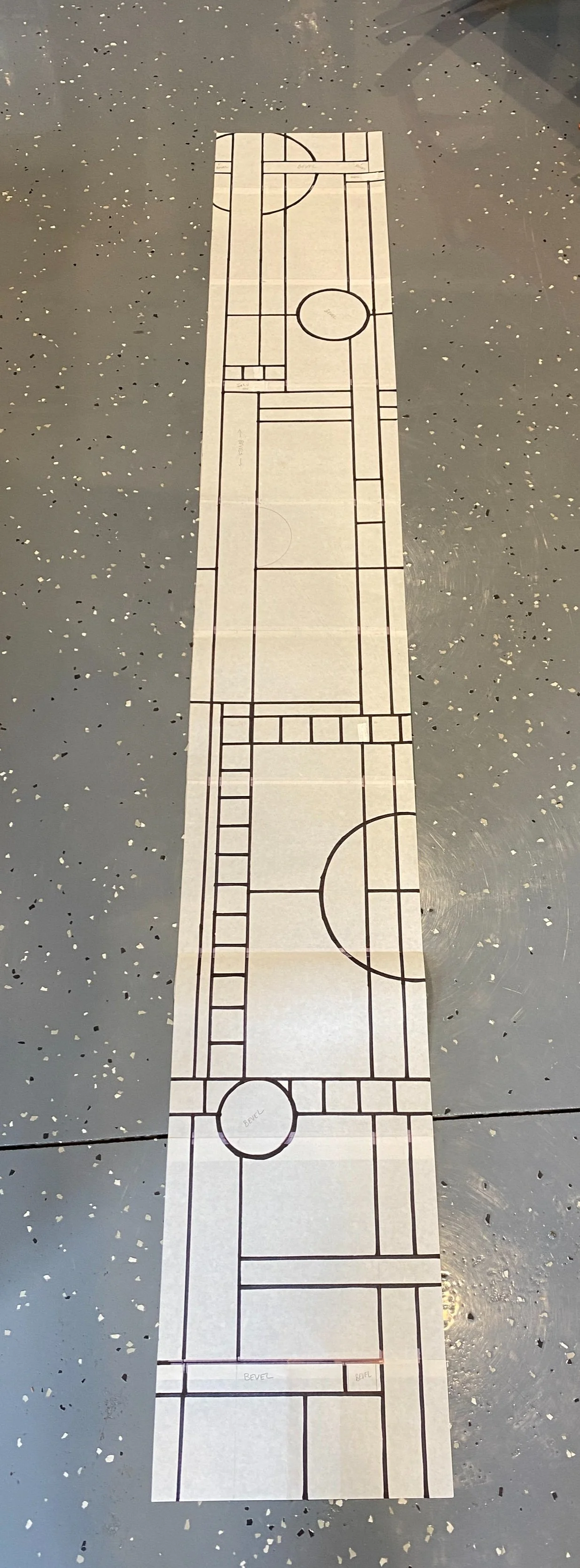 A friend who had recently purchased a new home, reached out to me to see if I would be interested in creating side-lights for their entryway. She and her husband favored the style of Frank Lloyd Wright and asked that I incorporate that feel into my design. I had never done this type of work but I am pleased with the outcome and appreciative of the faith and support of my friends!